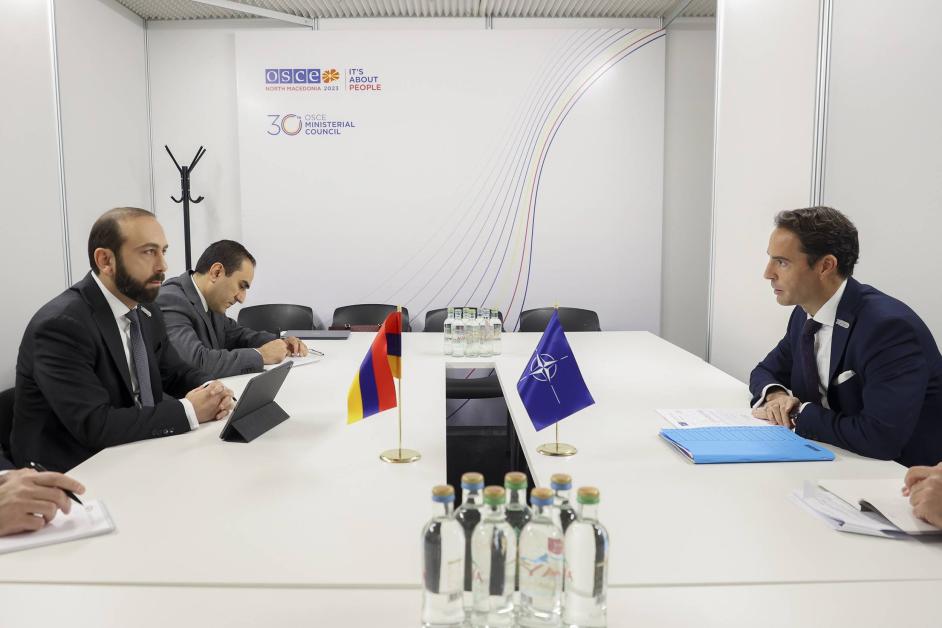 RA Foreign Minister Ararat Mirzoyan had a meeting with NATO Secretary General Javier Colomina Piris, Special Representative for the Caucasus and Central Asia, on November 30 in Skopje, as part of the 30th OSCE Ministerial Forum, the RA Foreign Ministry reports.